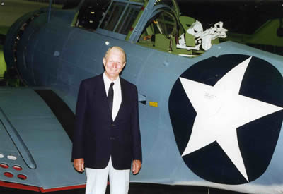to contact the association and join in the near future. I don't know how I became confused about your Dads hometown since his aerial visit to Arkadelphia when we were stationed In Newport, Arkansas became a squadron legend. Early in our training at Newport and while on a training flight with his air crew your father flew his PBJ to his hometown. Flying at the legal altitude for residential areas your father flew around the town pointing out via intercom to his co-pilot and crew his school house and other significant boyhood haunts. Hearsay has it that he pointed out a church toward the end of his tour and his crew thought that he was going to comment on it's importance to his youth. Instead your Dad supposedly asked his audience, "Looks mighty small down there don't it?" Then after a slight pause he said, " Well it's going to look a mighty lot bigger in just a bit." With that he put the airplane in a dive down to tree top level, flew past the church, and then throwing the plane into a vertical bank flew straight down the center of the main street with the down wing between the store buildings. Someone in town took the plane's number that was painted on the tail and called the Newport Air Base. When your Dad landed and taxied up to the flight line there was the then Major Nevile in his jeep waiting to greet him. As your Dad deplaned the Major informed him that beginning immediately or words to that effect that he would be doing his flying from the right hand seat demoting him on the spot to copilot. As the Major went roaring off your Dad turned to his crew who had heard the excahnge and with a big smile said, "How do you like that. My own Chamber of Commerce turned me in. They done turned their own boy in.". Some embellishment may have crept into this story but it is essentially true. I personally witnessed the Major's greeting on the flight line but didn't hear what was said and I have no knowledge of what eventually ensued except that your Dad was not a copilot for very long. He was soon right back in the left seat where he belonged. Booke, I would be happy to talk to you about the squadron and try to answer any questions you might have. After sixty some years my memory may be kind of hazy but I will do the best I can. Please feel free to call me. Best wishes, Samuel A. Wolfe |